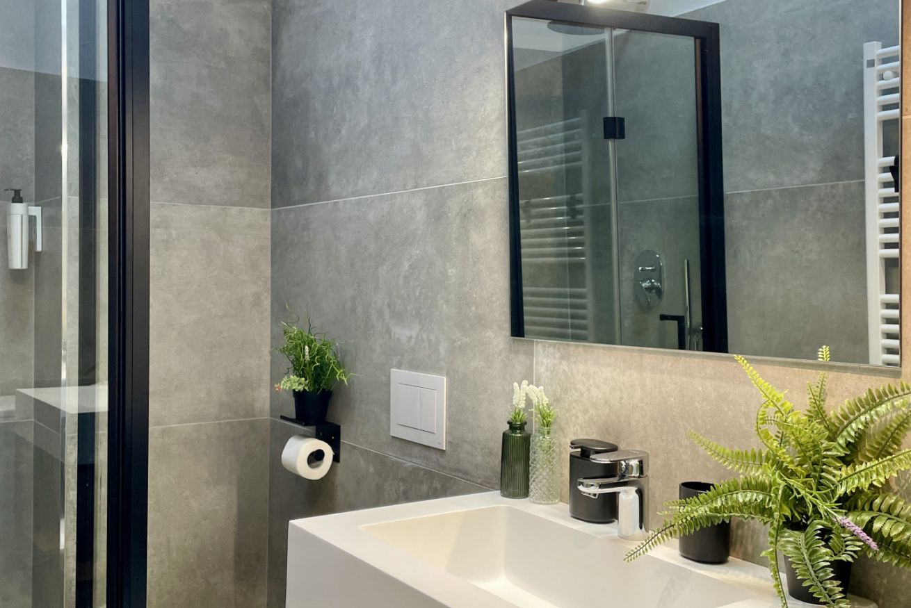 This modern and welcoming flat features two bedrooms, a bright living room with a sofa bed, a fully equipped kitchen for independent cooking. It also includes two bathrooms, one of which is supplied with a washing machine perfect for longer stays.