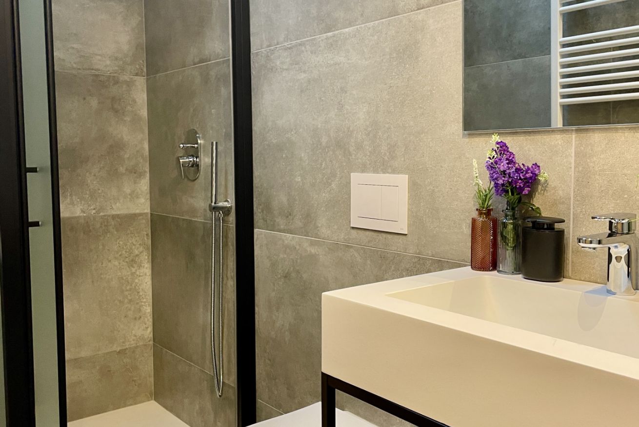 Due bagni privati, entrambi con doccia walk-in e finiture moderne
